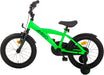 With the Explorer from AMIGO you will set off! Everyone will see you coming from afar on this 16-inch boys' bike with a sporty frame and flashy color combination. Psstt... not a lot of cycling experience yet? The removable training wheels will give you the right balance. As a companion, give a push in the right direction and explore together on our green and black Explorer! The pluses at a glance: [+] Smooth & effortless pedaling thanks to sealed bearings [+] Effective braking power with back-pedal brake and V-Brake [+] Long-lasting new value thanks to three double coating [+] Refined finish: stickers fixed under the lacquer [+] Stainless on the road thanks to stainless steel nuts and bolts [-] No stand available when removing the side wheels (available separately) Smooth pedaling and safe through traffic The pedals at AMIGO go around easily, thanks to sealed bearings in the pedals. This allows you to pedal effortlessly and move forward easily, even with children's legs! The bike features a 1-piece crank, a solid choice for young cyclists. The entire pedaling system is neatly hidden behind a closed chaincase. Super safe and low maintenance. Finally, the stainless steel nuts and bolts ensure that your new bike will remain rust-free for years. A convincing braking system On our Explorer you naturally go super fast, which of course requires effective and safe braking. With the coaster brake you stand still immediately. Do you want to brake more specifically or reduce speed a little? Then use the V-Brake on the aluminum front rim, which is a lot more powerful than a regular pinch brake. In addition to a lubricated ride, you also want to feel safe on the bike. With the help of the reflectors at the front, rear, on the spokes and even on the pedals, you will be highly visible! ROBUST, even in the long run! The strong steel frame and steel fenders are coated with no less than three coats of paint, which means the bike stays beautiful even when falling down and standing up. Even the decals are covered with paint, which keeps the design intact year after year On top of that, both the handlebars and the saddle are adjustable in height. A durable idea, because you can keep riding around on this 16-inch boys' bike (with a frame size of 23 centimeters) for a long time. Suitable for ages four to six. AMIGO, ready to move AMIGO gets you moving! With products with a fun and fresh design, at a surprisingly low price. The AMIGO collection consists of (electric) bikes, bike parts and accessories, scooters, skates, balance bikes and trampolines. Because we develop AMIGO products ourselves and buy them directly from the factory, we can guarantee not only good quality, but also a good price! So AMIGO also makes your free time just that little bit more fun. AMIGO, ready to move! General Specifications: Color: green, black Gender: boys Material frame: steel Material rims: aluminum Material fenders: steel Tires: pneumatic tires (black) Age indication: 4 to 6 years Weight: approx. 10.6 kg Specifications sizes: Wheel size: 16 inches Frame size: 23 cm Suitable for body height: 103-118 cm Saddle height: 56 cm (in the lowest position, measured from the ground) Adjustable saddle height: yes Height-adjustable handlebar: yes Brake specifications: Front brake type: V-Brake Rear brake type: back-pedal brake Lighting specifications: Lighting front: reflector Lighting rear: reflector Specifications accessories: Mudguards: yes, above front and rear wheel Side wheels: yes, detachable Chainguard: closed Bell: yes