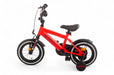 The Speeder from AMIGO is a really robust (cross) bike. For example, the frame of this boys' bike is not usually round but has tight angular lines. The 12-inch children's bike even resembles a motocross bike because of the sturdy fenders and the tires with rough tread and enormous grip. Cross town and country at high speeds on your new red and black Speeder! Psstt.... not a lot of cycling experience yet? The removable side wheels will give you the right balance. The pluses at a glance: [+] Smooth & effortless pedaling thanks to sealed bearings [+] Effective braking with back-pedal brake and V-brake [+] Long-lasting new value thanks to three double coating [+] Refined finish: stickers fixed under the lacquer [+] Stainless on the road thanks to stainless steel nuts and bolts [-] No stand available when removing the side wheels (available separately) Smooth pedaling and safe through traffic The pedals at AMIGO go around easily, thanks to sealed bearings in the pedals. This allows you to pedal effortlessly and move forward easily, even with children's legs! The bike features a 1-piece crank, a solid choice for young cyclists. The entire pedaling system is neatly hidden behind a closed chaincase. Super safe and low maintenance. Finally, the stainless steel nuts and bolts ensure that your new bike will remain rust-free for years. A convincing braking system On our Speeder you naturally go super fast, which of course requires effective and safe braking. With the coaster brake you stand still immediately. Do you want to brake more specifically or reduce speed a little? Then use the V-Brake on the aluminum front rim, which is a lot more powerful than a regular pinch brake. In addition to a lubricated ride, you also want to feel safe on the bike. With the help of the reflectors at the front, rear, on the spokes and even on the pedals, you will be highly visible! ROBUST, even in the long run! The strong steel frame and steel fenders are coated with no less than three coats of paint, which means the bike stays beautiful even when falling down and standing up. Even the decals are covered with paint, so the design remains unaffected year after year On top of that, both the handlebars and the saddle are adjustable in height. A durable idea, because you can ride around on this 12 inch boys bike (with frame size of 21.5 centimeters) for a long time. Suitable for ages between two and four. AMIGO, ready to move AMIGO gets you moving! With products with a fun and fresh design, at a surprisingly low price. The AMIGO collection consists of (electric) bikes, bike parts and accessories, scooters, skates, balance bikes and trampolines. Because we develop AMIGO products ourselves and buy them directly from the factory, we can guarantee not only good quality, but also a good price! So AMIGO also makes your free time just that little bit more fun. AMIGO, ready to move! General Specifications: Color: red, black, white Gender: boys Material frame: steel Material rims: aluminum Material fenders: steel Tires: pneumatic tires (black/white) Age indication: 2 to 4 years Weight: approx. 9.2 kg Specifications sizes: Wheel size: 12 inches Frame size: 21,5 cm Suitable for body height: 90-105 cm Saddle height: 44 cm (in the lowest position, measured from the ground) Adjustable saddle height: yes Height-adjustable handlebar: yes Brake specifications: Front brake type: V-Brake Rear brake type: back-pedal brake Lighting specifications: Lighting front: reflector Lighting rear: reflector Specifications accessories: Mudguards: yes, above front and rear wheel Side wheels: yes, detachable Chainguard: closed Bell: yes
