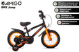 There it is, the tough but certainly rugged BMX Jump kids bike from AMIGO. With a convincing and powerful steel frame, no nonsense specifications and a sleek color scheme, you will win the next race with all your might. The black and orange 14 inch boys bike is combined with 'full black' hardware and matching handlebar pad, which is also removable. Hop on our AMIGO BMX Jump soon ! Psstt. not a lot of cycling experience yet? The removable side wheels will give you the right balance. AMIGO BMX Jump The AMIGO BMX Jump has all the basic conditions you would expect from a decent children's bike. A good braking system, detachable side wheels, closed chaincase, 1-piece crank and a sturdy frame finished with a regular coat of paint and stickers. Compare this model to the AMIGO Roady, AMIGO Urban, AMIGO Bella, AMIGO 2Cool, AMIGO Speeder or the AMIGO Explorer. This AMIGO children's bike is extra cheap! Thanks to clever packaging, you will enjoy extra advantage. The front wheel is packed separately in the box, making the packaging smaller and therefore the shipping cheaper. You still have to assemble the front wheel upon receipt. Don't feel like all that hassle? Then choose assembly in the shopping cart. This way you still retain a large part of your advantage. Despite these cost savings, the bike does not compromise on style, function and quality! The pluses at a glance: [+] Effective braking power with coaster brake and V-Brake [+] Solid quality and economically priced [-] No stand available when removing the side wheels (available separately) Unimpeded and safe through traffic To learn to ride a bike quickly, a stable base is the perfect start. The strong steel frame of this children's bike is equipped with all kinds of indispensable aspects. The comfortable soft saddle and the rubber grips provide the right grip, which is only a good start for the first activities on the bike. Furthermore, the entire pedal system is neatly hidden behind a closed chaincase. This gives not only a low-maintenance feature but also and safe character to the bike. It prevents dangerous situations such as clothing getting caught or trapped fingers. A robust and convincing braking system On our BMX Jump you naturally go super fast, which of course requires an effective and safe braking result. With the coaster brake you stand still immediately. Do you want to brake more specifically or reduce speed a little? Then use the V-Brake on the steel front rim, which is a lot more powerful than a regular pinch brake. In addition to a lubricated ride, you also want to feel safe on the bike. With the help of the reflectors on the front, rear, spokes and even on the pedals, you are highly visible. You will definitely stand out! Use the bell to let everyone hear you zoom by. VERSATILE, also in the long run! Children grow very quickly, especially at a young age. But rest assured both the saddle and the handlebars are height adjustable, so you can easily adjust the bike to any body size. A sustainable thought, because you can keep cycling around on this 14-inch boys' bike (with frame size of 22.5 centimeters) for a long time. Suitable for ages between three and five. AMIGO BMX Jump Jump Jump! AMIGO, ready to move AMIGO gets you moving! With products with a fun and fresh design, at a surprisingly low price. The AMIGO collection consists of (electric) bikes, bike parts and accessories, scooters, skates, balance bikes and trampolines. Because we develop AMIGO products ourselves and buy them directly from the factory, we can guarantee not only good quality, but also a good price! So AMIGO also makes your free time just that little bit more fun. AMIGO, ready to move! General Specifications: Color: black, neon orange Gender: boys Material frame: steel Material rims: steel Material handles: rubber Material fenders: plastic Tires: pneumatic tires (black) Age indication: 3 to 5 years Weight: approx. 9.6 kg Specifications sizes: Wheel size: 14 inches Frame size: 22,5 cm Suitable for body height: 98-108 cm Adjustable saddle height: yes Handlebar adjustable in height: yes Brake specifications: Front brake type: V-Brake Rear brake type: back-pedal brake Lighting specifications: Lighting front: reflector Lighting rear: reflector Specifications accessories: Mudguards: yes, above front and rear wheel Side wheels: yes, detachable Chain guard: closed Handlebar pad: yes Bell: yes