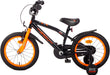 There it is, the tough but certainly rugged BMX Jump kids bike from AMIGO. With a convincing and powerful steel frame, no nonsense specifications and a sleek color scheme, you will win the next race with all your might. The black and orange 16 inch boys bike is combined with 'full black' hardware and matching handlebar pad, which is also removable. Hop on our AMIGO BMX Jump soon ! Psstt. not a lot of cycling experience yet? The removable training wheels will give you the right balance. AMIGO BMX Jump The AMIGO BMX Jump has all the basic conditions you would expect from a decent children's bike. A good braking system, detachable side wheels, closed chaincase, 1-piece crank and a sturdy frame finished with a regular coat of paint and stickers. Compare this model to the AMIGO Roady, AMIGO Urban, AMIGO Bella, AMIGO 2Cool, AMIGO Speeder or the AMIGO Explorer. This AMIGO children's bike is extra cheap! Thanks to clever packaging, you will enjoy extra advantage. The front wheel is packed separately in the box, making the packaging smaller and therefore the shipping cheaper. You still have to assemble the front wheel upon receipt. Don't feel like all that hassle? Then choose assembly in the shopping cart. This way you still retain a large part of your advantage. Despite these cost savings, the bike does not compromise on style, function and quality! The pluses at a glance: [+] Effective braking power with coaster brake and V-Brake [+] Solid quality and economically priced [-] No stand available when removing the side wheels (available separately) A robust and convincing braking system On our BMX Jump you naturally go super fast, which of course requires effective and safe braking. With the coaster brake you stand still immediately. Do you want to brake more specifically or reduce speed a little? Then use the V-Brake on the steel front rim, which is a lot more powerful than a regular pinch brake. In addition to a lubricated ride, you also want to feel safe on the bike. With the help of the reflectors on the front, rear, spokes and even on the pedals, you are highly visible. You will definitely stand out! Use the bell to let everyone hear you zoom by. VERSATILE, also in the long run! Children grow very quickly, especially at a young age. But rest assured both the saddle and the handlebars are height adjustable, so you can easily adjust the bike to any body size. A sustainable thought, because you can keep cycling around on this 14-inch boys' bike (with frame size of 25.5 centimeters) for a long time. Suitable for ages between four and six. AMIGO BMX Jump Jump Jump! AMIGO, ready to move AMIGO gets you moving! With products with a fun and fresh design, at a surprisingly low price. The AMIGO collection consists of (electric) bikes, bike parts and accessories, scooters, skates, balance bikes and trampolines. Because we develop AMIGO products ourselves and buy them directly from the factory, we can guarantee not only good quality, but also a good price! So AMIGO also makes your free time just that little bit more fun. AMIGO, ready to move! General Specifications: Color: black, neon orange Gender: boys Material frame: steel Material rims: steel Material handles: rubber Material fenders: plastic Tires: pneumatic tires (black) Age indication: 4 to 6 years Weight: approx. 10.4 kg Specifications sizes: Wheel size: 16 inches Frame size: 25,5 cm Suitable for body height: 103-118 cm Adjustable saddle height: yes Handlebar adjustable in height: yes Brake specifications: Front brake type: V-Brake Rear brake type: back-pedal brake Lighting specifications: Lighting front: reflector Lighting rear: reflector Specifications accessories: Mudguards: yes, above front and rear wheel Side wheels: yes, detachable Chain guard: closed Handlebar pad: yes Bell: yes