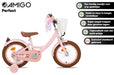 Steal the show in the schoolyard with the AMIGO Perfect girls bike! All the other kids will look back when you pass by on your new bike. With the handlebar swinging, whizzing through the wind. Besides being a feast for the eyes, the handlebars and saddle are adjustable in height and the side wheels are removable. Of course, the bike is equipped with a sturdy frame and reliable brakes. So you will enjoy the AMIGO Perfect for years to come ! The pluses at a glance: [+] A handy basket for all your belongings [+] Height adjustable saddle and handlebars [+] Super smooth pedaling through closed bearings [+] Top quality for a soft price [-] Because of the training wheels, no bike stand included [-] No rear carrier Top quality for a soft price Besides the AMIGO Bella, Fairy and Urban, this is the fourth model of the AMIGO girls' bikes. The Bella, Fairy and Urban feature a rear carrier (and front carrier), stickers under the paint and a 3-piece crank. With the AMIGO Perfect, we kept it simple by leaving out the carriers and putting the stickers on the paint. Of course, we didn't skimp on the quality of the brakes and frame. This way we can still deliver a top quality bike at a soft price! A feast for the eyes You can't take your eyes off the AMIGO Perfect, admit it! This girls' bike features the latest trendy colors, just the way girls like it. This bike is made for princesses. Their tiara can be easily carried in the basket, so convenient. Years of fun This girls bike has solid brakes and a solid frame. The bottom bracket is equipped with sealed bearings, so you need less power on the pedals. In addition, these bearings also last longer, so you can enjoy this girls bike for years! The handlebars and saddle are adjustable in height, so the bike grows with you. Still too small? Look between the larger sizes of AMIGO! AMIGO, ready to move AMIGO gets you moving! With products with a fun and fresh design, at a surprisingly low price. The AMIGO collection consists of (electric) bikes, bike parts and accessories, scooters, balance bikes and trampolines. Because we develop AMIGO products ourselves and buy them directly from the factory, we can guarantee not only good quality, but also a good price! So AMIGO also makes your free time just that little bit more fun. AMIGO, ready to move!