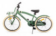 There it is again the old familiar 2Cool kids bike from AMIGO, but now in the 2.0 version! Still with its determined vintage cruiser character but WITH an even tighter color scheme and improved specifications. The cool green 'Army Green' frame is combined with timeless cream details and 'full black' hardware. The 20 inch boys bike has a front carrier especially for your school or gym gear, how convenient. You won't find a transport bike cooler than this one! Psstt. on this inch size is a stand mounted, so you can park the bike anywhere and quickly. The advantages at a glance: [+] Smooth & effortless pedaling thanks to sealed bearings [+] Effective braking with back-pedal brake and V-brake [+] Long-lasting new value thanks to triple lacquer coating [+] Refined finish: stickers fixed under the lacquer [+] Stainless on the road thanks to stainless steel nuts and bolts [+] Tip! Combine with matching size bike crate or basket (not included) Smooth pedaling and safe through traffic The pedals at AMIGO go around easily, thanks to sealed bearings in the pedals. This allows for effortless pedaling and easy progress, even with children's legs! The bike features a 1-piece crank, a solid choice for young cyclists. The entire pedaling system is neatly hidden behind a closed chaincase. Super safe and low maintenance. Finally, the stainless steel nuts and bolts ensure that your new bike will remain rust-free for years. A convincing braking system On our 2Cool you naturally go super fast, which of course requires effective and safe braking. With the coaster brake you stand still immediately. Do you want to brake more specifically or reduce speed a little? Then use the V-Brake on the aluminum front rim, which is a lot more powerful than a regular pinch brake. In addition to a lubricated ride, you also want to feel safe on the bike. With the help of the reflectors at the front, rear, on the spokes and even on the pedals, you will be highly visible! ROBUST, even in the long run! The strong steel frame and steel fenders are coated with no less than three coats of paint, which means the bike stays beautiful even when falling down and standing up. Even the decals are covered with paint, so the design remains unaffected year after year On top of that, both the handlebars and the saddle are adjustable in height. A durable idea, because you can keep cycling around on this 20-inch boys' bike for a long time. Suitable for ages six to eight. AMIGO, ready to move AMIGO gets you moving! With products with a fun and fresh design, at a surprisingly low price. The AMIGO collection consists of (electric) bikes, bike parts and accessories, scooters, skates, balance bikes and trampolines. Because we develop AMIGO products ourselves and buy them directly from the factory, we can guarantee not only good quality, but also a good price! So AMIGO also makes your free time just that little bit more fun. AMIGO, ready to move! General specifications: Color: green Color name: Army Green Gender: boys Material frame: steel Material rims: aluminum Material fenders: steel Material front carrier: steel Tires: pneumatic tires (cream) Age indication: 6 to 8 years Specifications sizes: Wheel size: 20 inches Suitable for body height: 118-128 cm Adjustable saddle height: yes Handlebar adjustable in height: yes Brake specifications: Front brake type: V-Brake Rear brake type: back-pedal brake Lighting specifications: Lighting front: reflector Lighting rear: reflector Specifications accessories: Mudguards: yes, above front and rear wheel Chain guard: closed Stand: yes Front carrier: yes Bell: yes