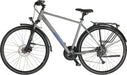 Are you planning on biking and looking for a high-quality trekking bike that offers value for money? Then the Winora Domingo 27 is the perfect bike for you. Reliable components, a lightweight aluminum frame and a stylish look for maximum cycling enjoyment wherever the road takes you. The 27-speed Shimano gears take you smoothly up any incline, easy-to-use disc brakes provide safety on the way down. The SR Suntour suspension fork makes the ride comfortable, even on rough terrain, and the rack offers space and storage for everything you need on tour. This trekking bike features a high-frame in the stylish Microchip Grey Matt color. Specifications general: Frame color: gray, black Model color: Microchip Grey Matt Model type: Winora Domingo 27 (WDGN1) Gender: men Material frame: Aluminum Material rim: aluminum (double-walled) Tires: Schwalbe Road Cruiser with reflection, 42-622 (black) Saddle: Selle Royal Wave, adjustable height (black) Grips: XLC (black) Wheel size: 28 inch Frame size: 56 cm Handlebar stem: fixed Suspension seat post: no Suspension fork: yes, with Speed Lock (SR Suntour NEX HLO) Load capacity: 130 kg Gear specifications: Crankset: Triple Gears: 27 Gear type: derailleur Derailleur type: Shimano Acera (3 speed) & Alivio (9 speed) Drive: chain Brake specifications: Front brake type: hydraulic disc brakes (Tektro) Rear brake type: hydraulic disc brakes (Tektro) Lighting Specifications: Front lights: AXA Compactline 35 Switch (working on hub dynamo) Lighting at the back: AXA Juno Steady (works on hub dynamo) StVZO hallmark: yes (V/A) Accessories specifications: Bike stand: side stand Chain guard: none Luggage carrier: yes, with MIK-click system (max. 25 kg) Quick tires: no Bell: yes Lock: none